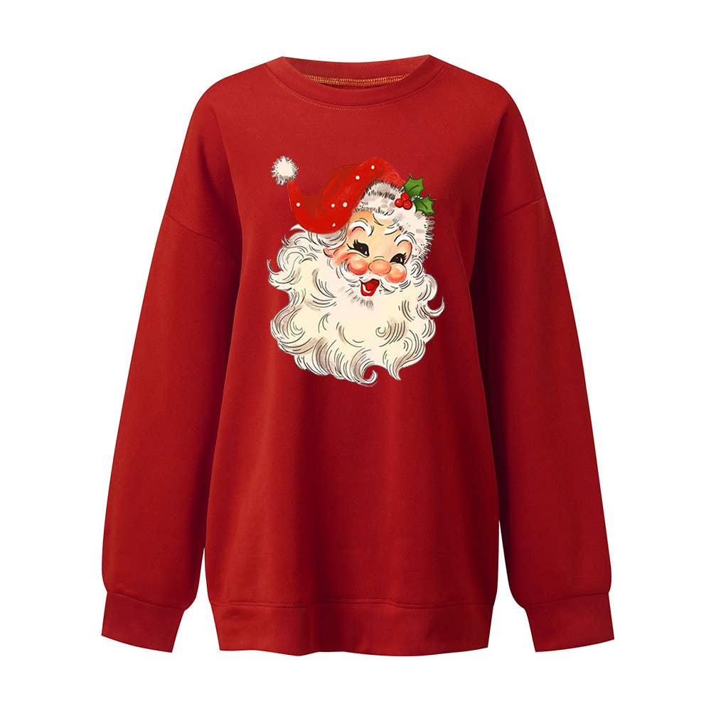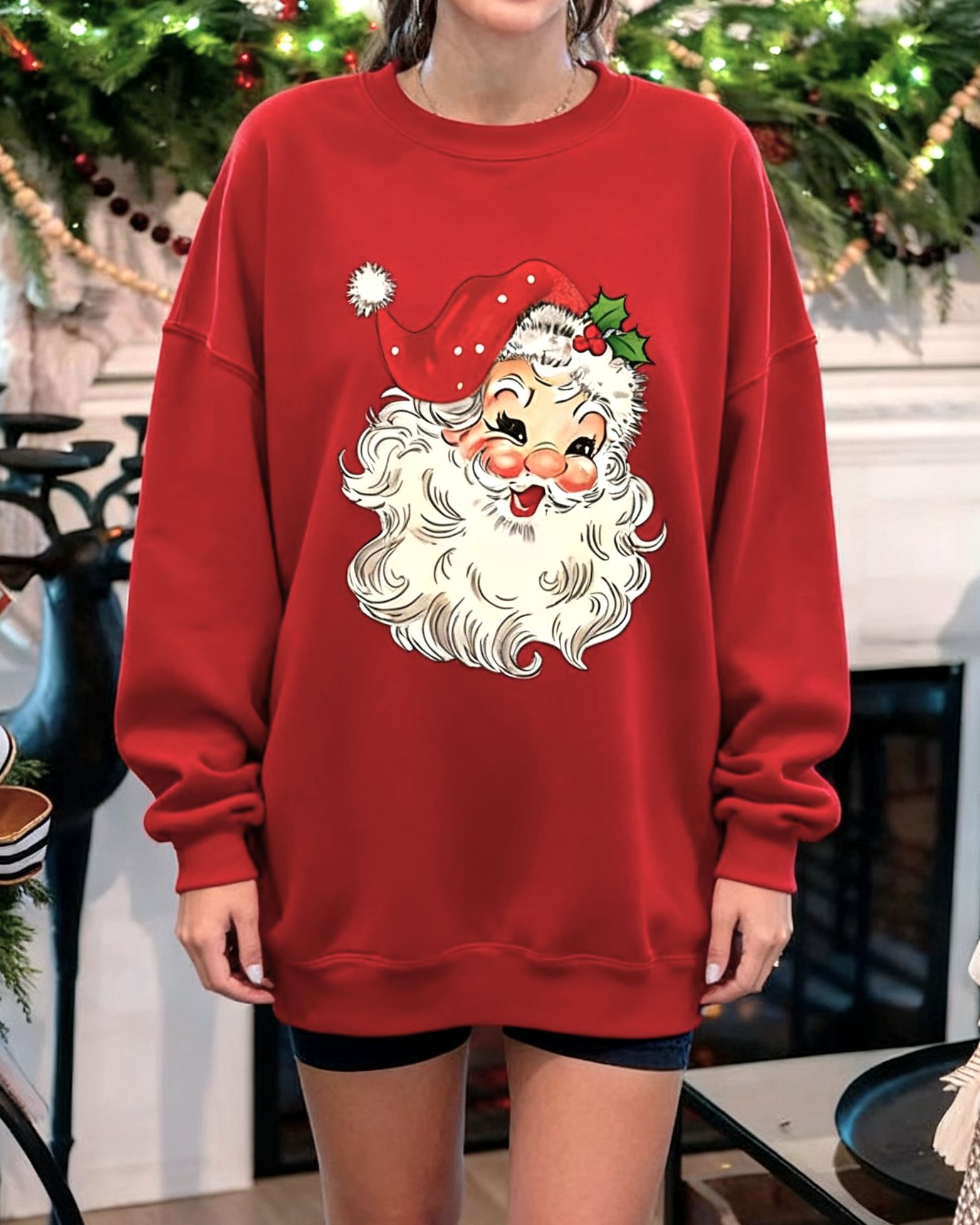 CHRISTMAS SANTA CLAUS PRINT DROP SHOULDER SWEATSHIRT