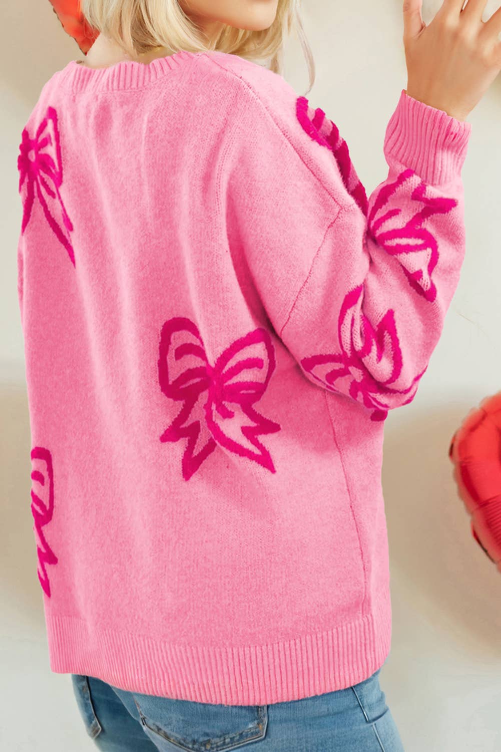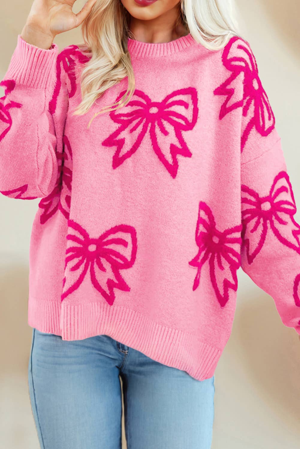Bow Pattern Drop Sleeve Loose Sweater