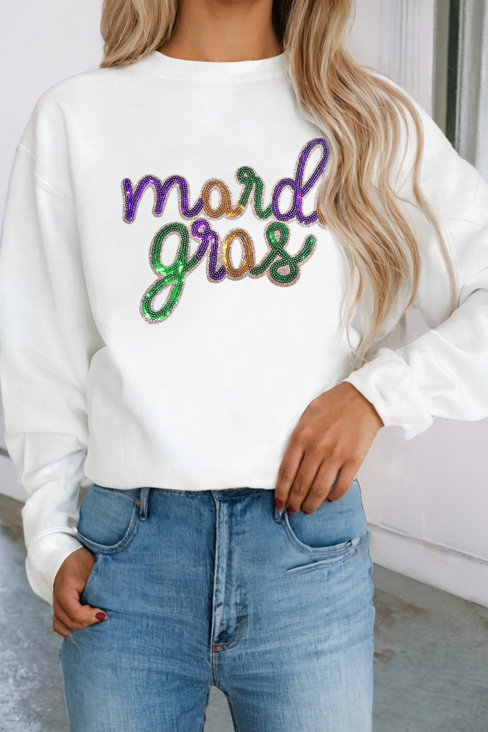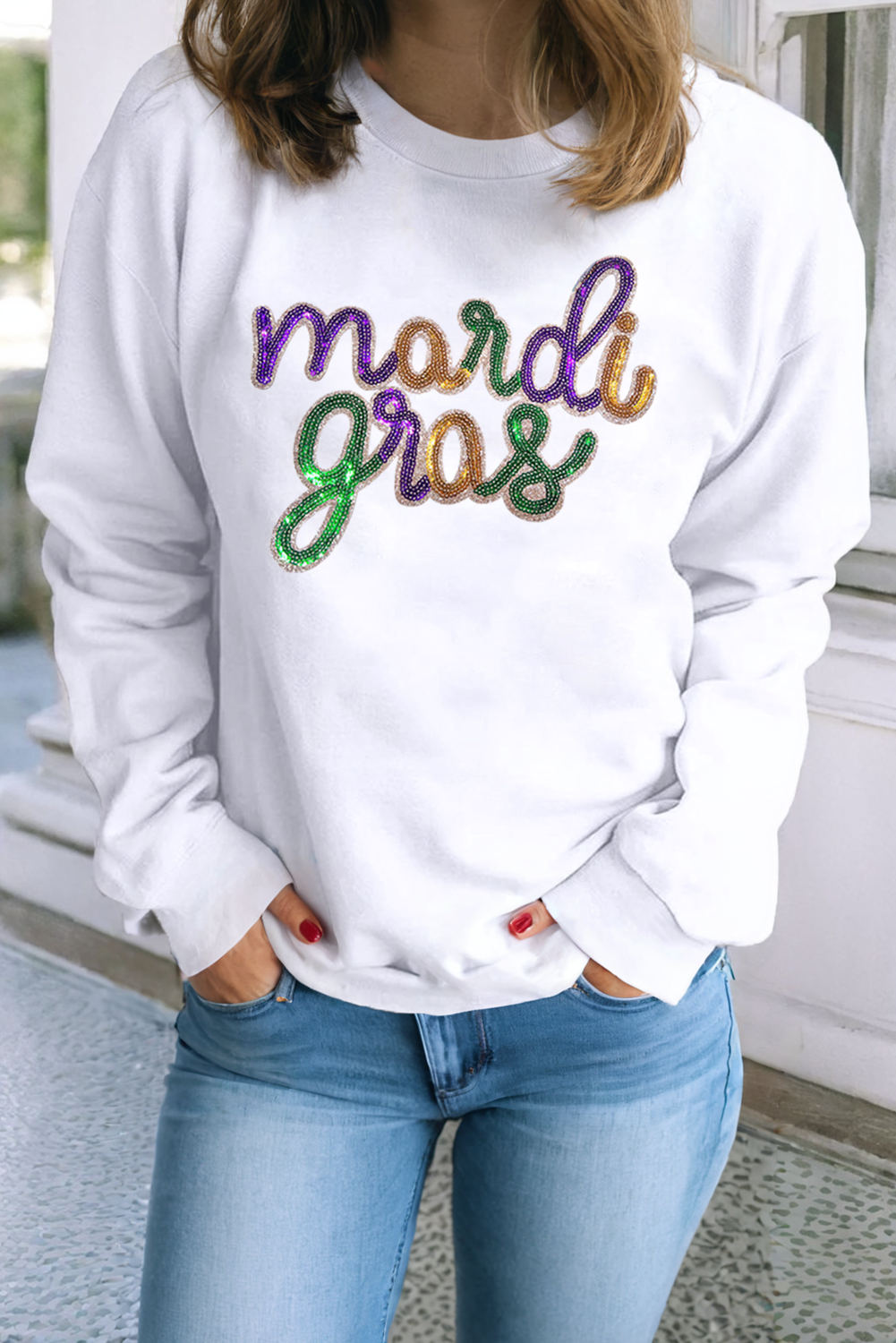 Sequined Mardi Gras Graphic Crew Neck Sweatshirt