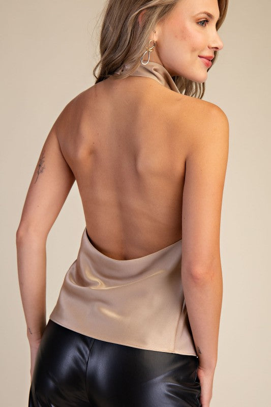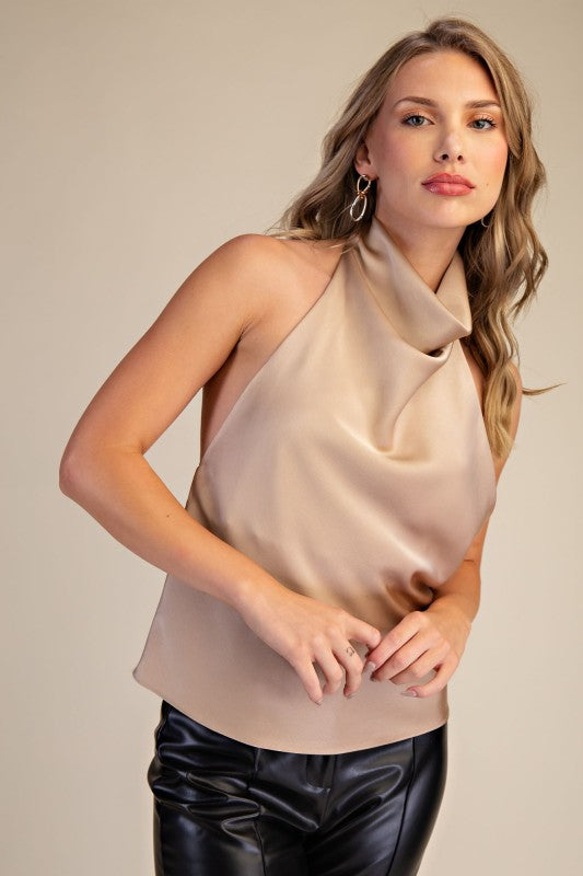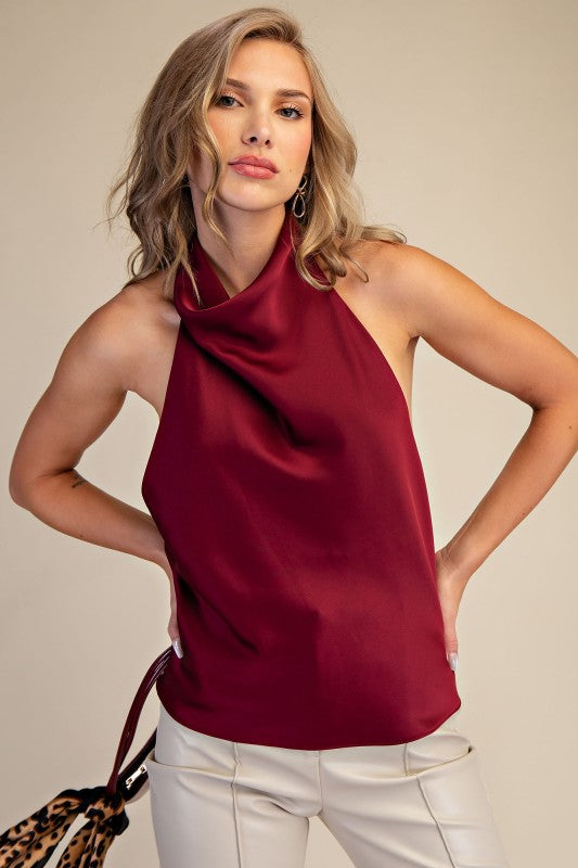 Halter Neck Cowl Neck Sleeveless Satin Top