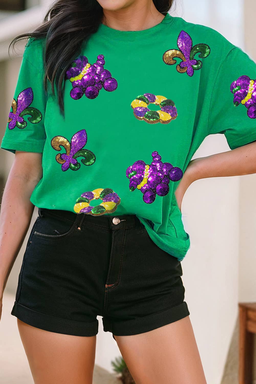 Mardi Gras Sequin Patched Graphic Tee