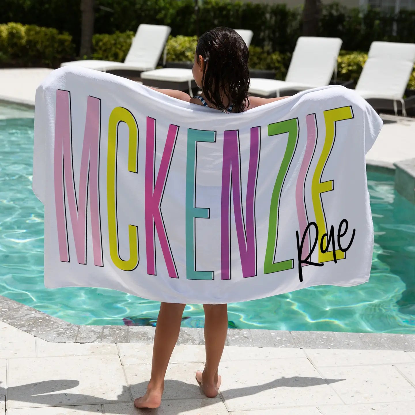 Personalized Outline Block Name Beach Towel | 30"x60"
