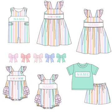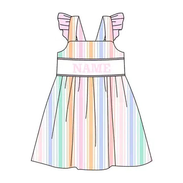 Summer Pastel Stripe Princess Kids Outfits | Personalized Name Collection